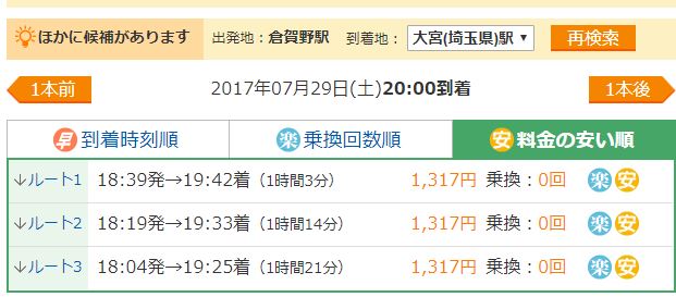 大宮に確実に20:00に入ればいいので自宅を慌てて出る必要はありません。普通列車です。