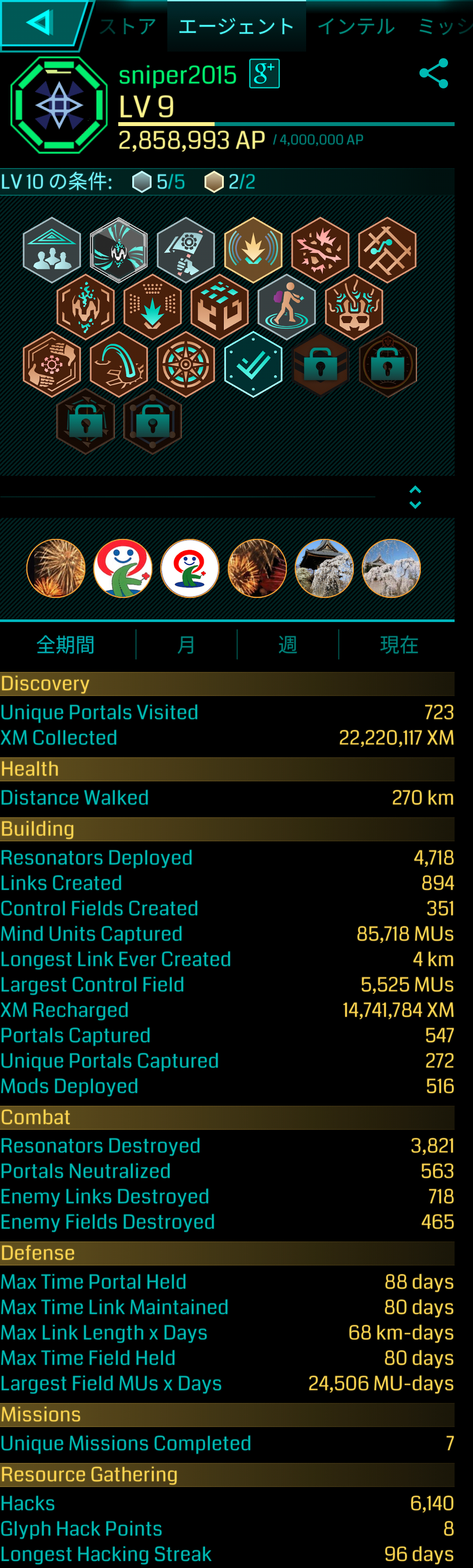 Ingressのレベルは9。ポータル申請の権利はレベル10から発生します。