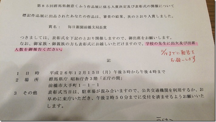 高崎市で『県知事賞』。群馬県で『毎日新聞前橋支局長賞』