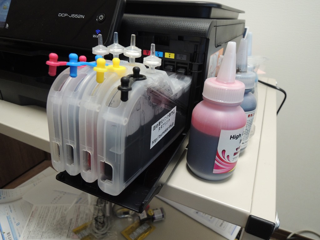 で、そんなにインク減ってなかったりしますが、今日明日とお休みなので、DCP-J552Nのインク取り替えちゃえって勢いで互換インクに交換してみました。