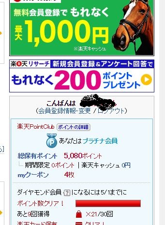 楽天ポイントが貯まっています。