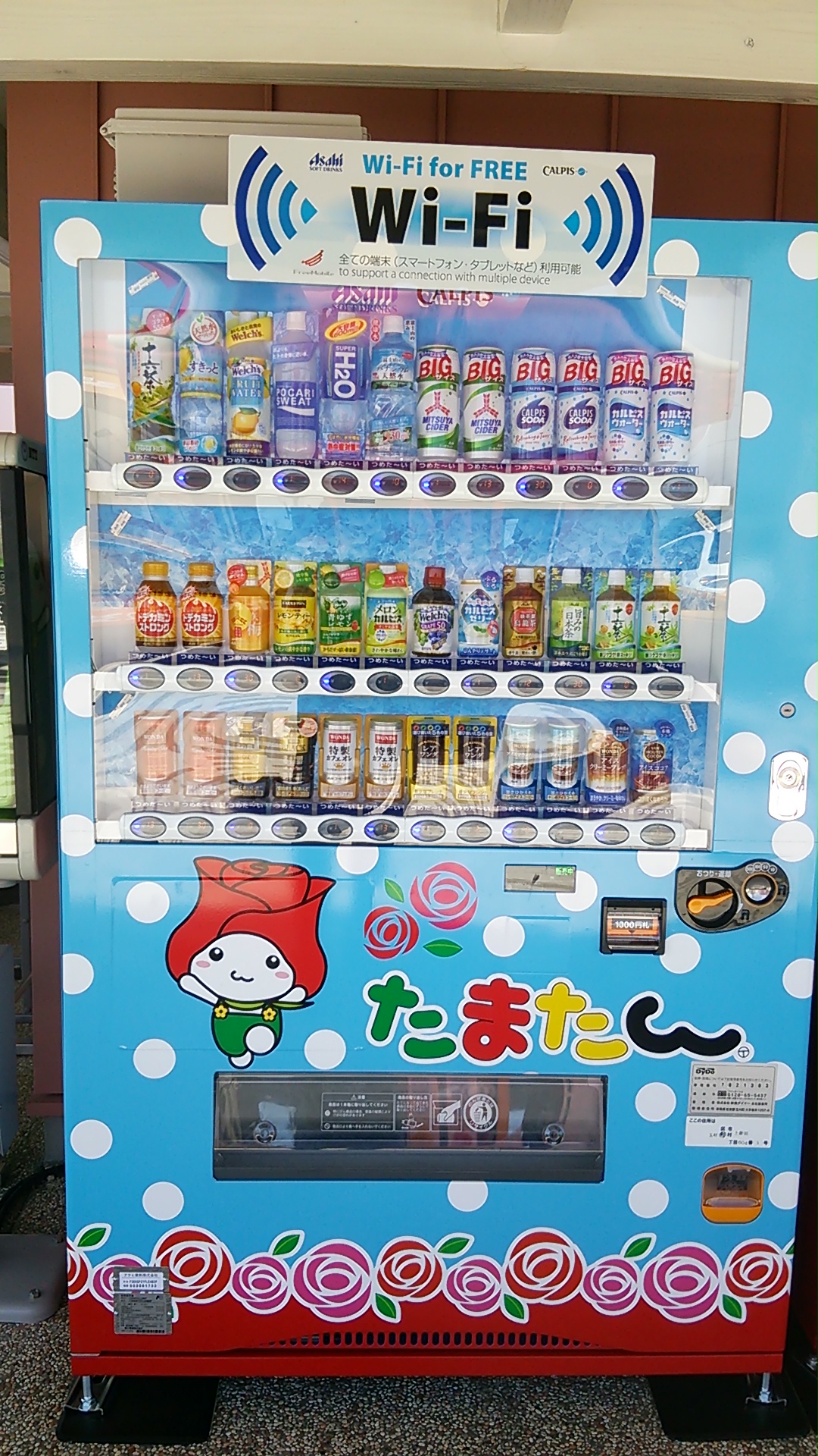 自動販売機がフリースポットとなるようで、半径50m位は大丈夫のようです。