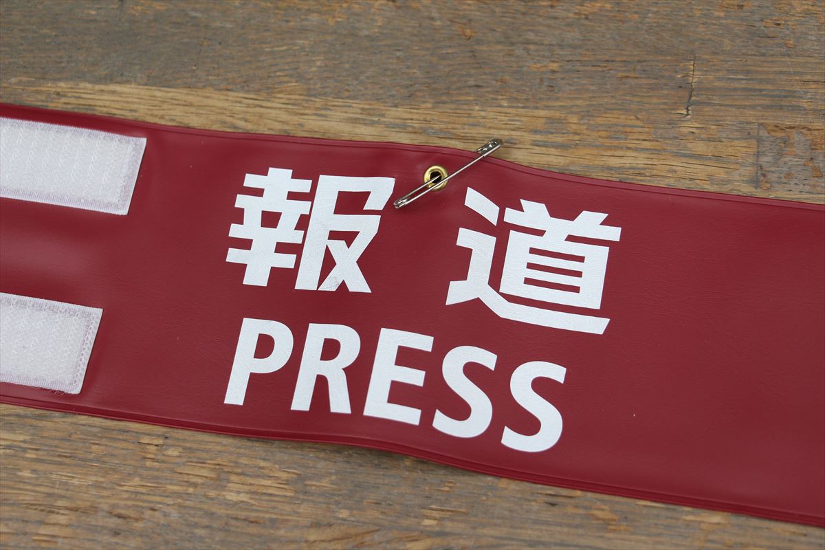 差し込み式の腕章なので、PRESSって文字とロゴ入れるだけでそれっぽくなるのはわかっています。