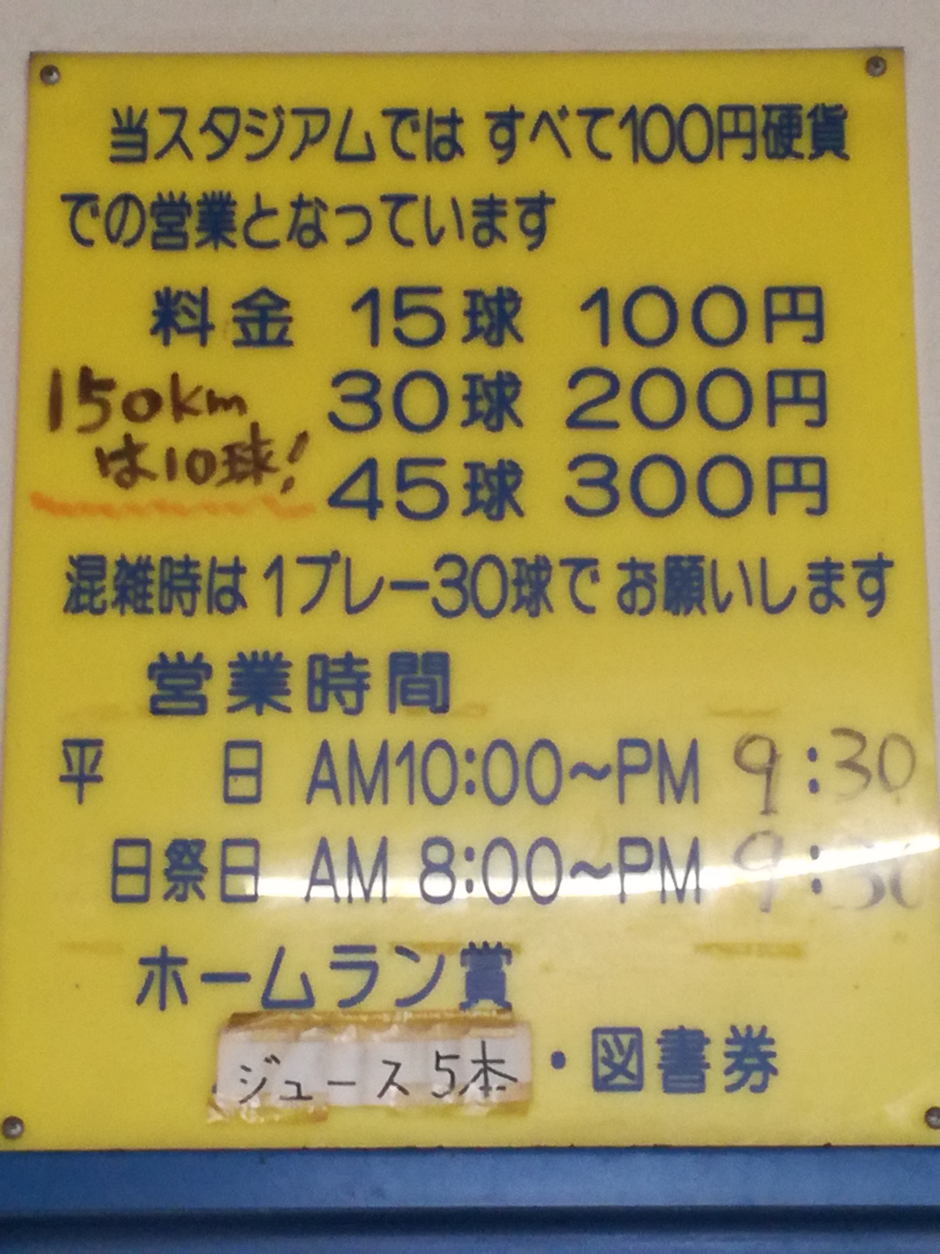 100円で15球。ただし150km/hは10球100円 それだけ(^.^)