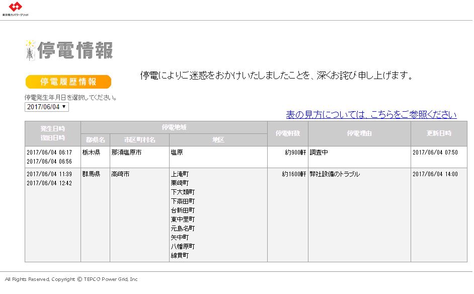「高崎 停電」でGoogle検索。すぐに答えは出ました(^.^)