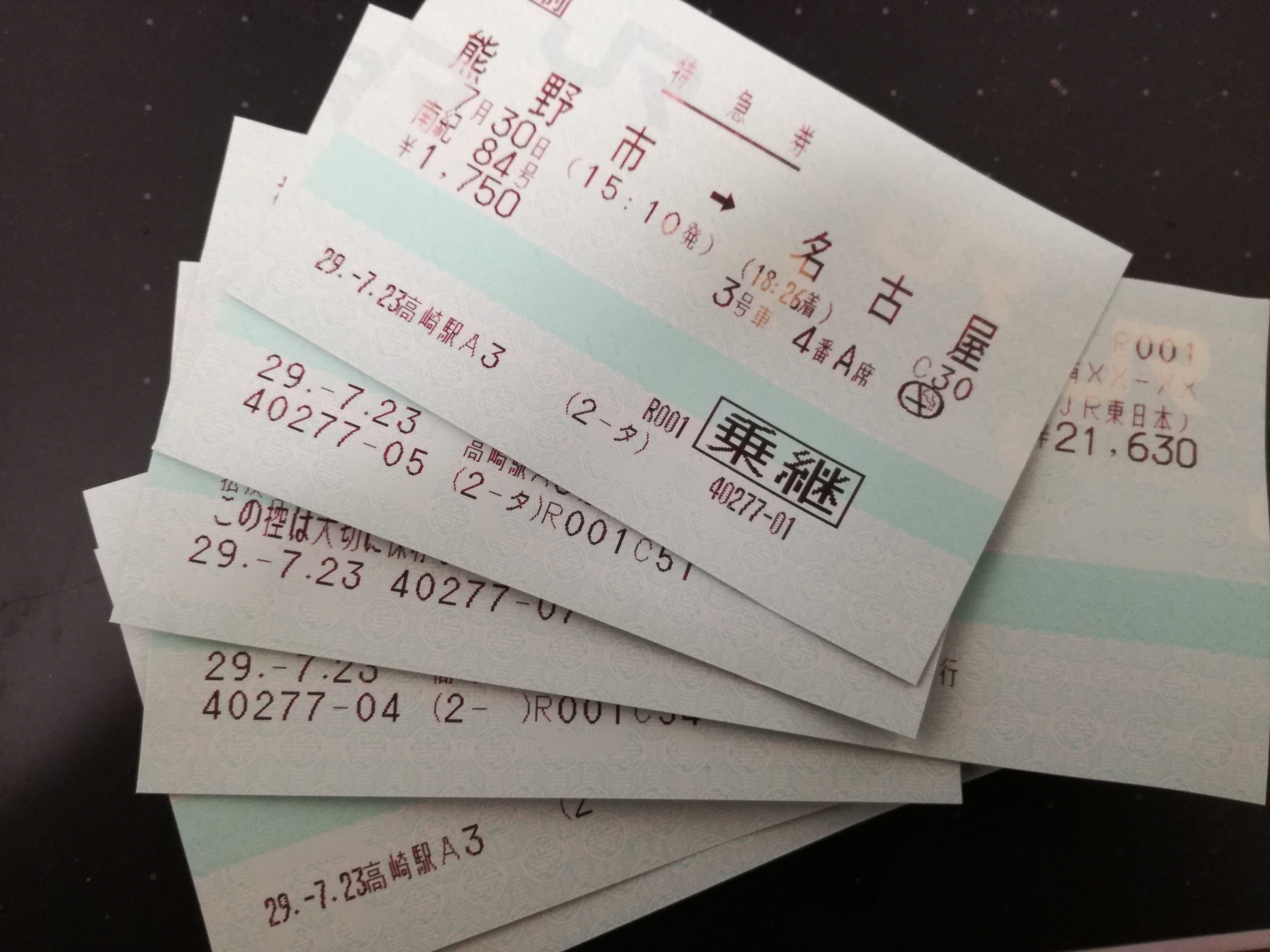 12:00 高崎駅にて29日30日の三重県熊野市からの帰りの乗車券を購入します。