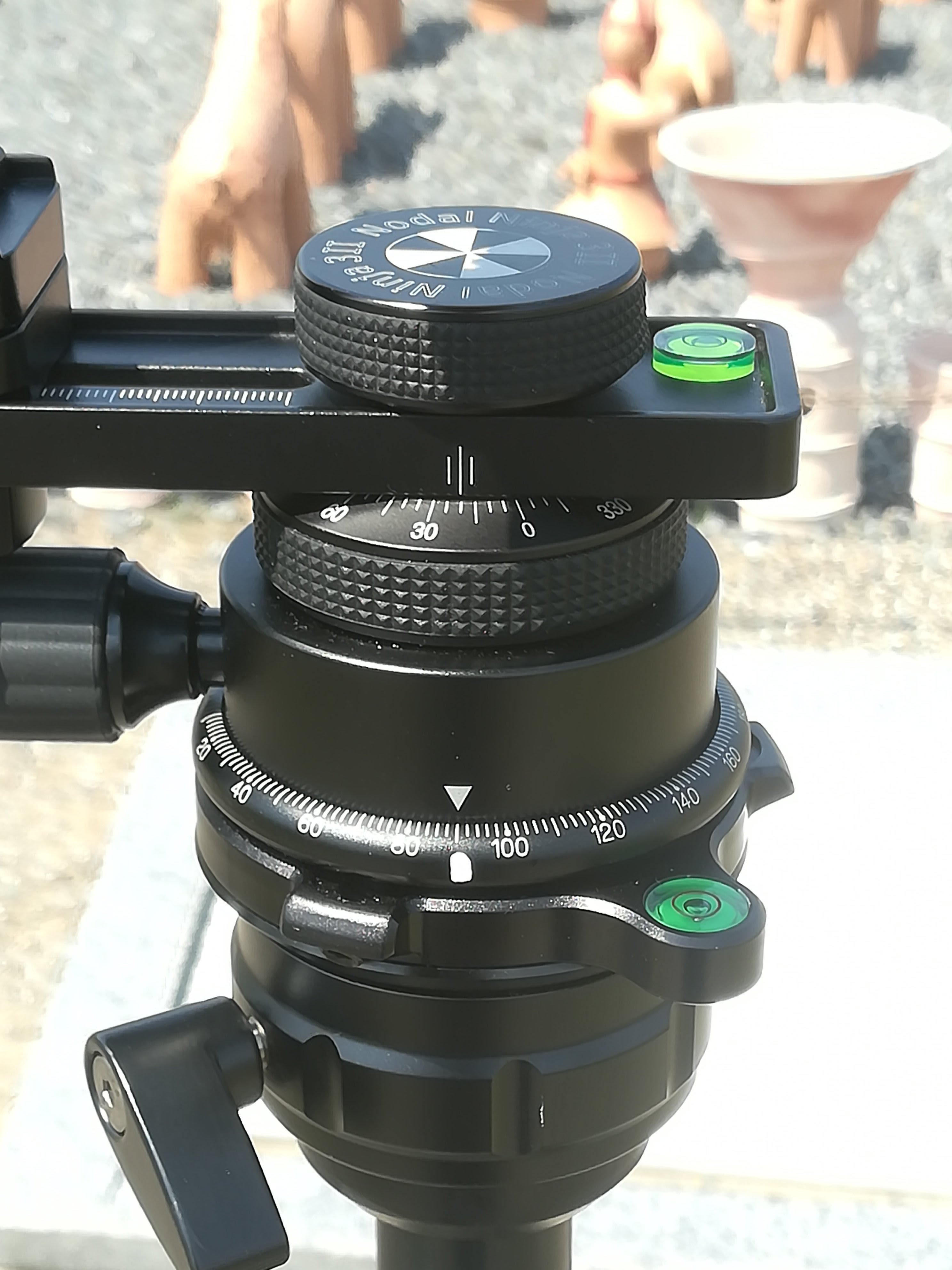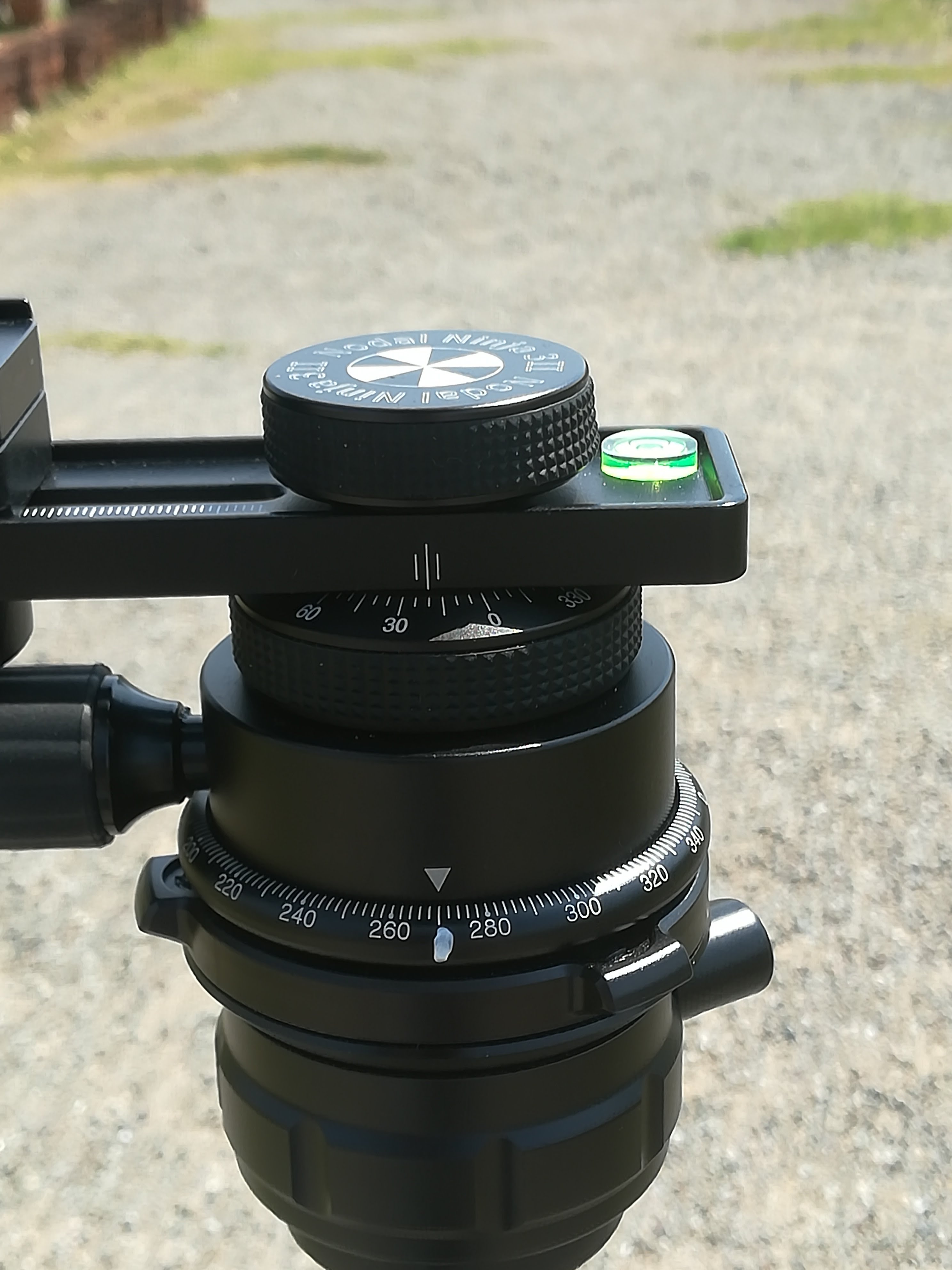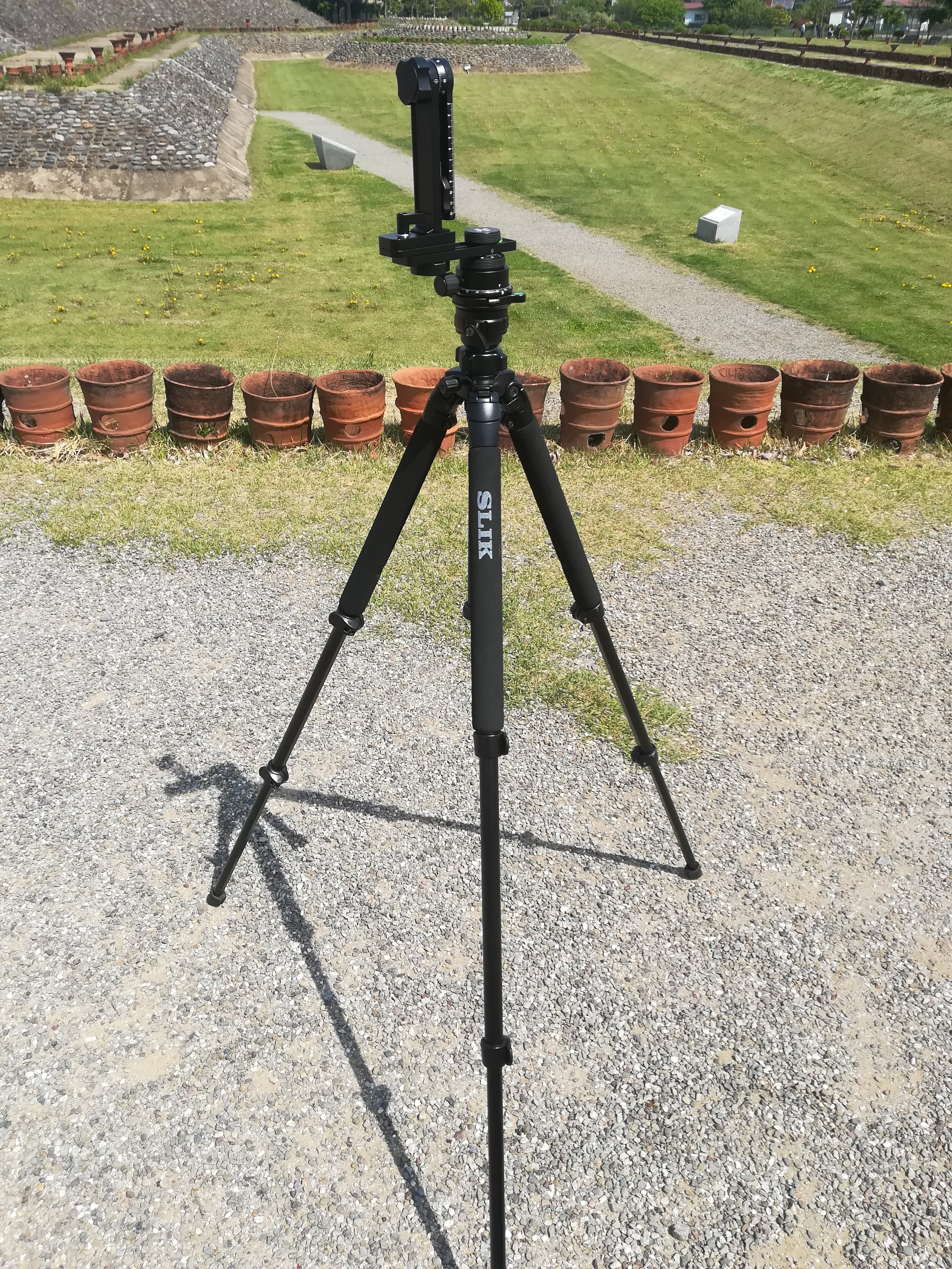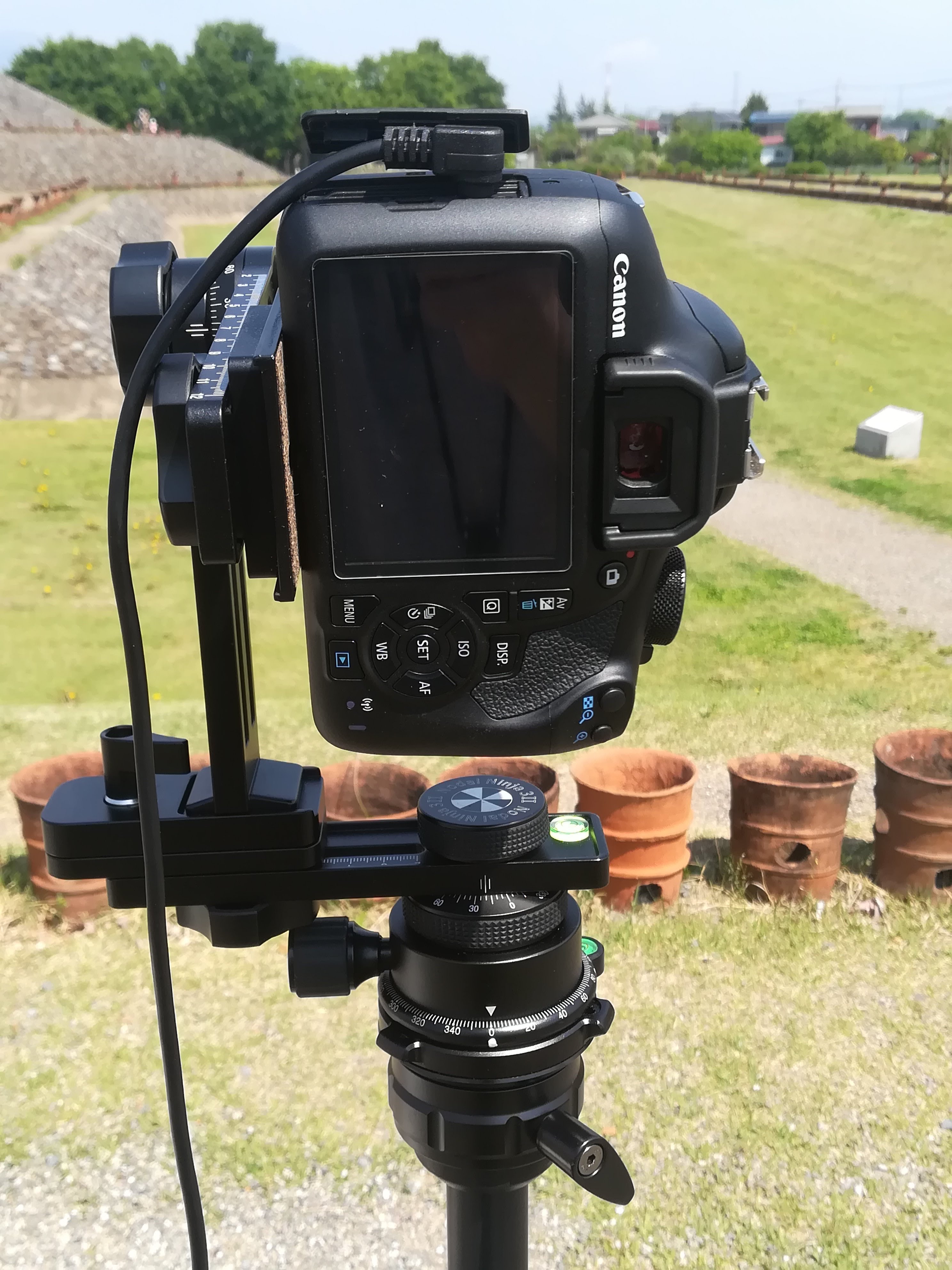 私の場合、三脚にローテータ・水平器・ノーダルニンジャは付けっぱなしですので、現地で三脚の脚を伸ばすだけです。